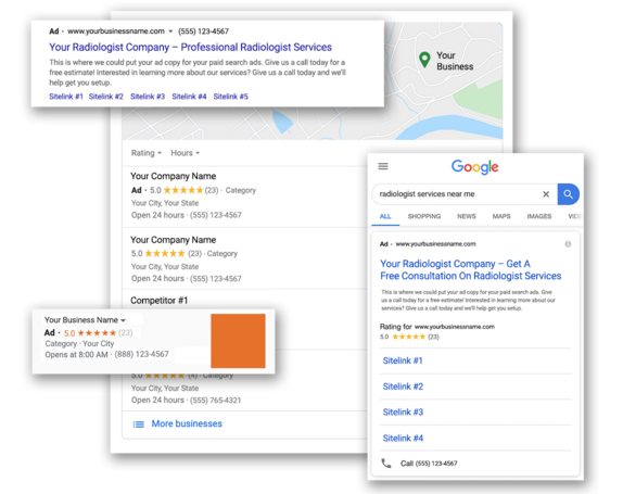 Utilizing Facebook’s advertising platform, we can tap into many different audiences of people on Facebook and Instagram. Social Media advertising has the unique ability to not only target the right Radiology customer in the area of your choice, but it also allows social interaction between a customer and the Radiology Business. People can comment, like, and share your post with other friends and family. Facebook also has the ability to use video and image ads to engage potential customers. Your customers are Facebook and Instagram, and we’ll use these platforms to reach them directly with your messaging.